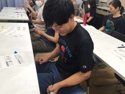 毎年この時期に教職員でエピペンの使い方を練習キットを使って実習し、いざという時のために練習しています。また今年は、食物アレルギーの話やアレルギーの初期症状に対する対応をしっかり学びました。大丈夫と思っていてもその時の体調などで突然アレルギーの症状を発症することがあるので、アレルギーを発症した児童を発見した際に第1発見者の対応がとても重要になることなど話していただき教職員で再度対応について確認しました。