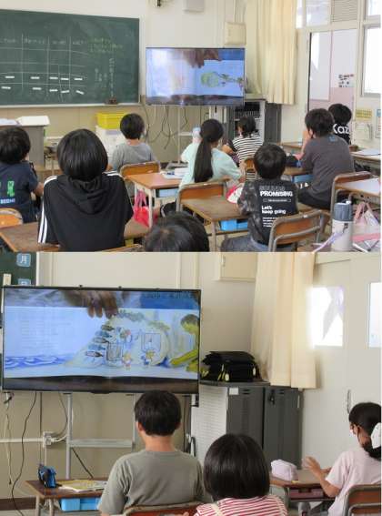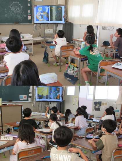 うみぼうずとぐりとぐらが楽しく海で泳いでいる様子はとても楽しそうで、「海いいな〜」という声が聞こえてきました。