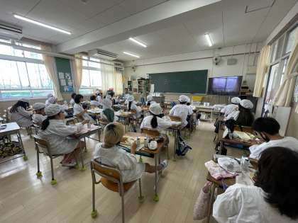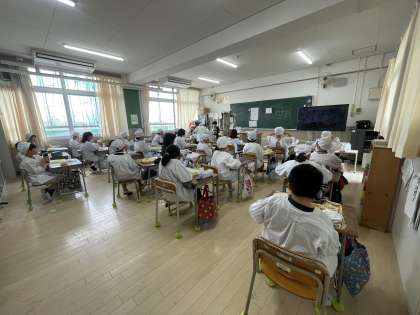 キャベツとさんどまめのサラダは、甘酸っぱい味付けで食べやすくて、苦手な児童でも食べることができていました。