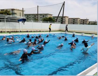 4年生の今日のめあては「じょうずに浮かぼう!」です。上手に泳ぐためには、上手に浮かぶことは欠かせません。上手に浮かぶコツは「力を抜くこと」で、いろいろな楽しい動きを通して、力を抜きながら浮かぶ感覚をつかんでいきました。