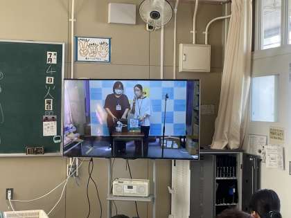 「よしおくんがぎゅうにゅうをこぼしてしまったおはなし」は、たおれた牛乳びんから勢いよく牛乳が流れ込み、牛乳の海になったり、牛乳フラワーが咲いていたりと愉快なお話しでした。子どもたちからは「こんな牛乳飲みたいな〜」という声が聞こえてきました。
