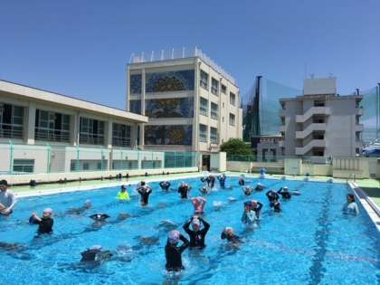 水慣れをした後は泳ぎの基本の練習をし、後半は泳力別にグループをつくってそれぞれの目標に合わせてしっかり泳ぎました。中には300m以上泳いだ子もいました。