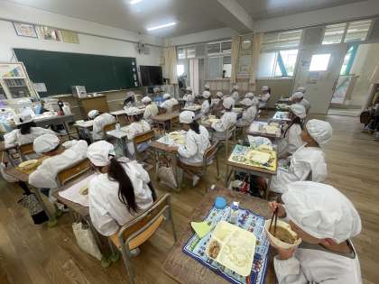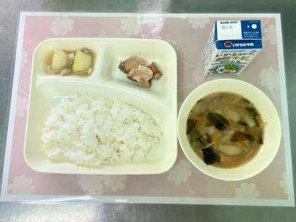 今日の献立は、さけのつけ焼き・みそ汁・とうがんの煮もの・ごはん・牛乳です。