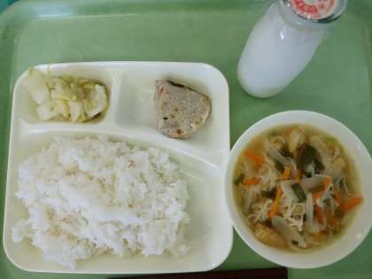 かつおのガーリック風味焼き・にゅうめん・はくさいの甘酢づけです。