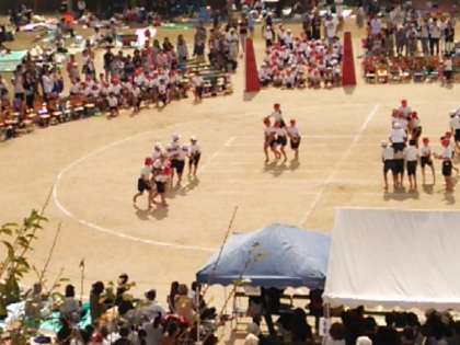 午後1時40分、5年の騎馬戦が行われています。
