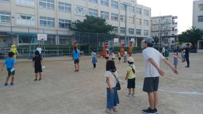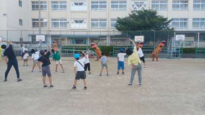 本日は、校庭に恐竜たちもまぎれ込んでいたようで