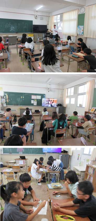 5年1組…担任の先生の夏休みの体験談を楽しそうに聞いていました。