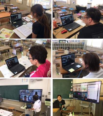 今日の放課後、全学年がGoogleClassroomsを使用して、学校と家庭の双方向通信テストを実施しました。学級ごとに一人一台端末を用いて、画面越しに先生としりとりなどをしながらコミュニケーションをとっていました。