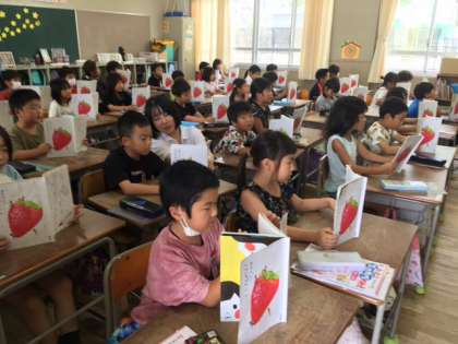 1年1組の教室では、国語の教科書の詩をみんなで何度も群読し、上手に読めるようになっていました。