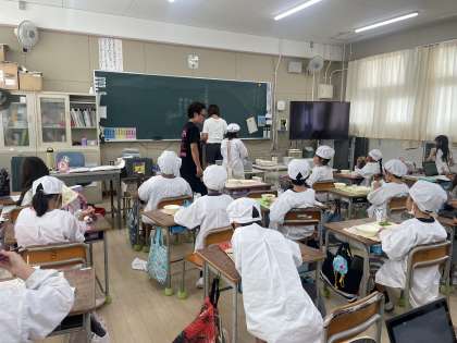 給食のオイスターソースは、かきに水あめやしょうゆ、さとう、塩などで味付けし、加熱して作られています。