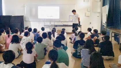 まずは「着衣泳とは何か」についての話を全員で聞き、プールで実際何をしないといけないのかを確認しました。
