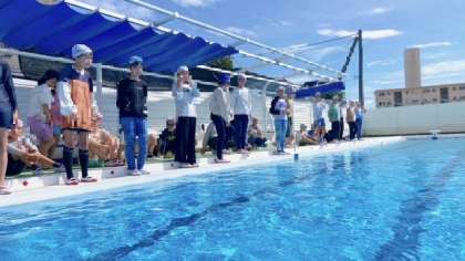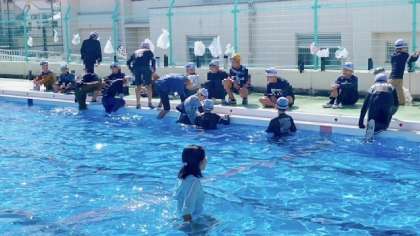 プールでは水着の上に服を着て、歩いたり走ったり、泳いでみたりといつもの感覚とは違うことを感じることができました。