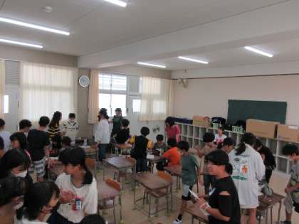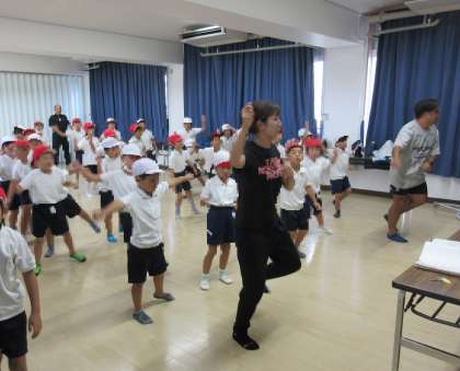 〇2年生は、しっかりと体を動かすので、エアコンの効いた多目的室で練習をしていました。