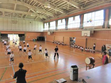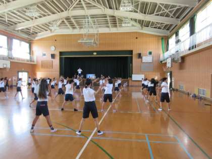 今日も暑いコンディションだったので、練習場所と練習時間、水分補給などに気を付けながら団体演技の練習に頑張っていました。写真上は5年生、写真下は2年生です。