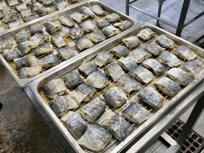 さごしの塩焼きは、身が引き締まっていて程よい塩加減で、ごはんが進みました。骨がある部位もありましたが上手にとって食べることができていました。