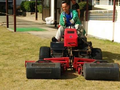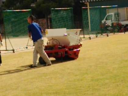 10月8日午後2時より、冬芝の種まきを井高野ゴルフセンターにしていただきました。