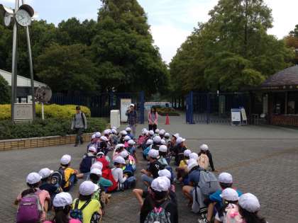 長居公園に到着(遠足3年)