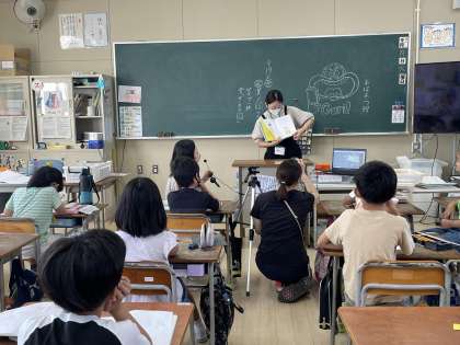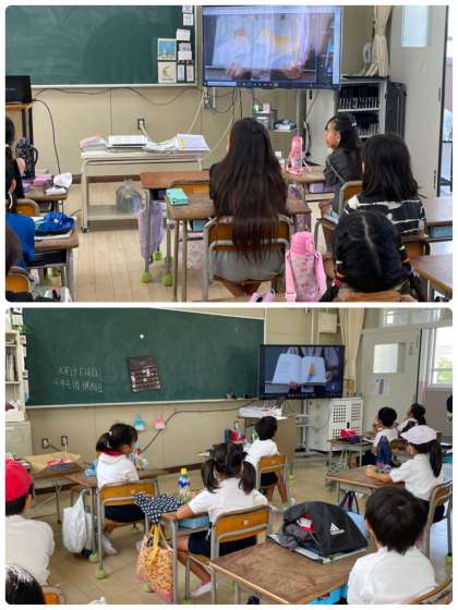 今日は3年1組の教室から読み聞かせ隊のみなさんが絵本を読み、各教室に放送しました。