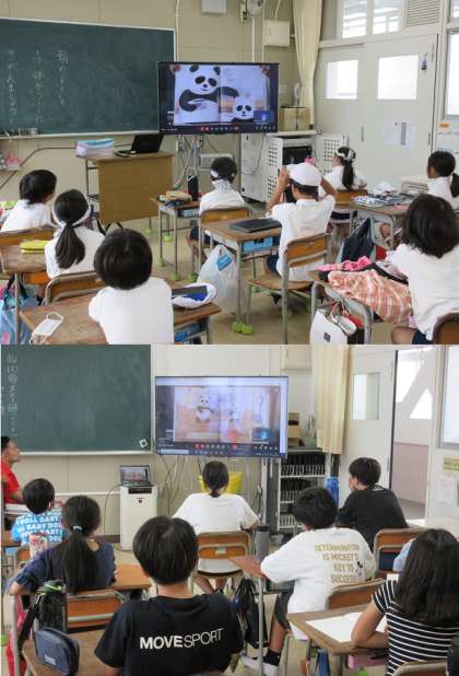 今日は3年2組の教室から読み聞かせ隊のみなさんが絵本を読み、各教室に放送しました。