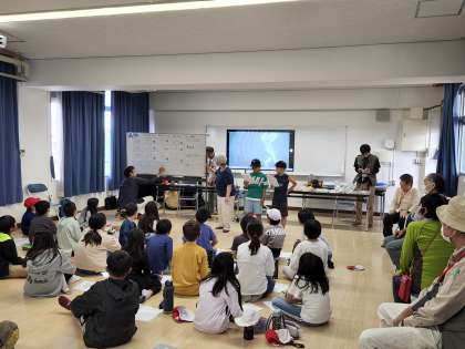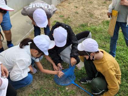 3・4時間目に外部から講師の先生方がきてくださり、「生き物さがし」の学習を行いました。登録されている生き物は4000種類近くもあるそうですが、まだまだデータに載っていない珍しい生き物はたくさん存在するということで、子どもたちは必死に見つけようとしていました。1学期に行った生き物さがしで見つけたものでも、季節が変わったことで姿に変化のあるものもあり、最後には班ごとに見つけたことを伝え合いました。
