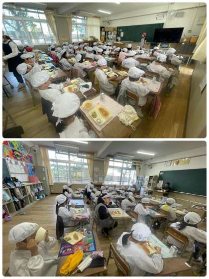 今日の給食週間では、食品ロスについての「たべものかいじゅうあらわる?!」という紙しばいをテレビ放送しました。明日の続きも楽しみにしていてくださいね!