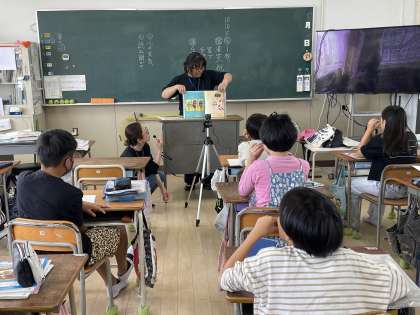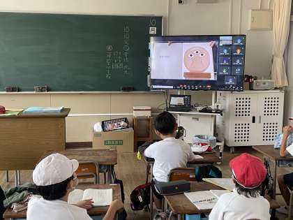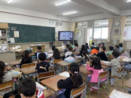今日は4年1組の教室から読み聞かせ隊のみなさんが絵本を読み、各教室に放送しました。