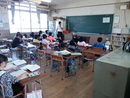 10月19日の単元は、「大きい数のわり算を考えよう」です。少人数に各教室に分かれて、どの児童も真剣な表情で取り組んでいましたl