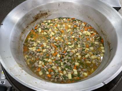 豚肉とじゃがいもの煮ものは、豚肉やじゃがいも、にんじん、つなこんにゃく、さんどまめなどが入った彩りのよい煮ものでした。