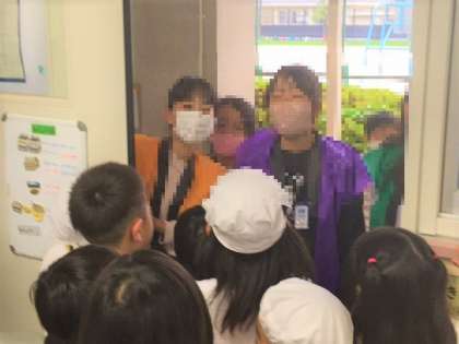 また、ごちそうさまの後は、教室に保健美化委員会「手洗い隊」のメンバーが「手を洗いましょう!」と教室を巡回していました。