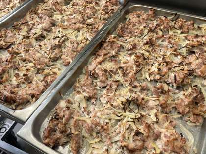 豚肉のバジル焼きは、さわやかなバジル風味でたまねぎと混ぜ合わせていて、とてもおいしかったです。