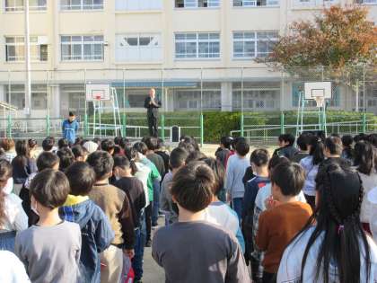 朝会担当の先生からは、時間を守ることはチャイムを守るだけでなく、掃除の始まりや終わりなど、その時々で意識する必要があるという話がありました。