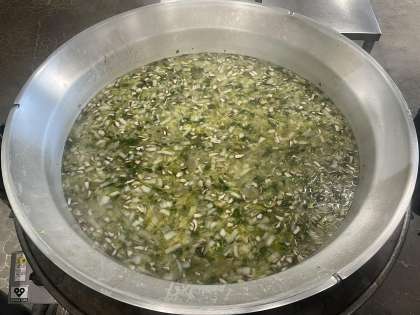 うすくず汁は、はくさいやしいたけ、うすあげ、みつばなどが入った具だくさんの体があたたまるうすくず汁でした。