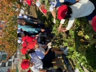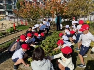 本日 1年生は、学習園で栽培していたおいもをみんなで掘りました。