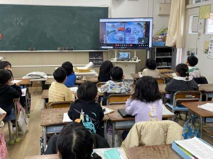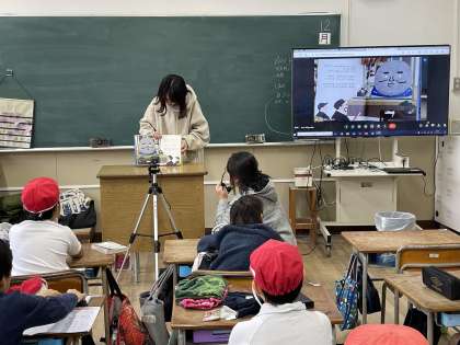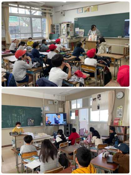今日は2年1組の教室から読み聞かせ隊のみなさんが絵本を読み、各教室に放送しました。