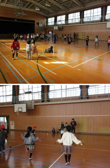 先週から運動場の工事が始まり、休み時間に運動場で遊べなくて、残念な気持ちになっていたみなさん。お待たせしました!本日より15分休みと昼休みに体育館を開放します。