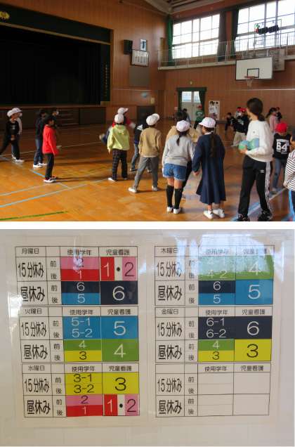 ただ、広さが限られているので、曜日ごと、時間ごとのローテーションです。1日目の今日は15分休みに1・2年生が早速元気に体を動かしていました。