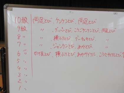今日の4年生は、1組がボールを使ってドリブルダッシュの練習を、2組が短縄で縄跳びにチャレンジしていました。(写真3枚目は、2組の縄跳びチャレンジの級です)
