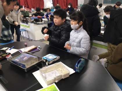 5年1組は、理科で「電子てんびん」の使い方を学習していました。真剣に先生の指示を聞くまなざし…写真処理なしで紹介したかったです。