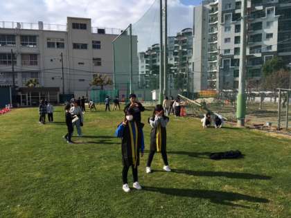 5年2組は、図工の作品のモデル用にポーズを決めて写真を撮っていました。日差しがやさしい芝生の上で、なんだかいい雰囲気です。