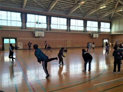 今日の昼休みは体育館で5・6年生が遊べる番です。