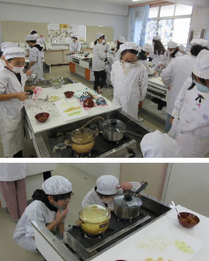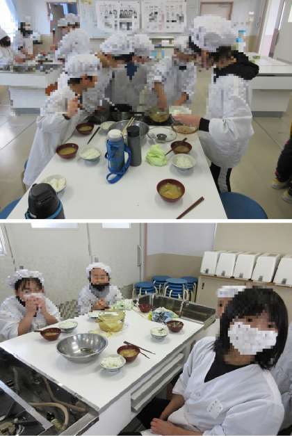 ごはんを炊く時間、火の強さの調整などが難しかったですが、おこげのついたおいしいごはんが炊き上がりました。調理が終わり、「おこげがおいしい」「お味噌汁もおいしい」と感想を言い合いながら、みんなで食べました。