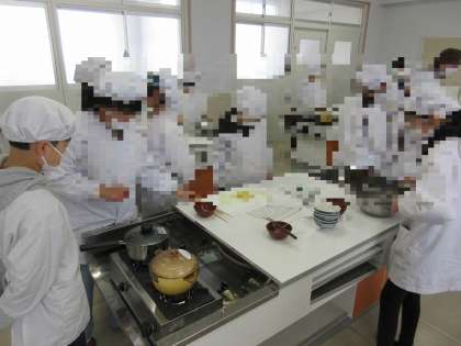 今日は5年生の調理実習がありました。今日実習で調理するのはごはんとお味噌汁です。お米を計量したり味噌汁の具を切ったりするなど役割を班の中で分けて行いました。