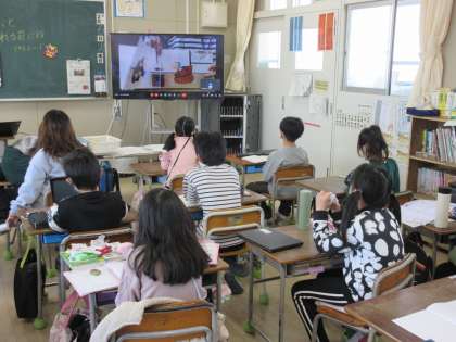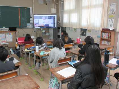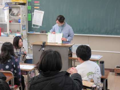 今日は5年1組の教室から、読み聞かせ隊のみなさんが絵本を読み、各教室に放送しました。