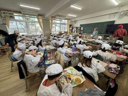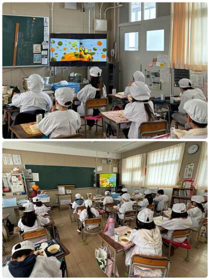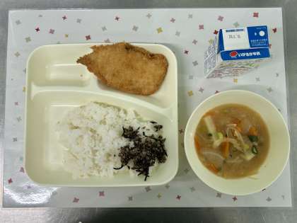 いわしフライは、大きないわしの開きをカラッと油で揚げたかみごたえが抜群の1品でした。骨までよくかんで食べることができている児童の姿が多く見られました。