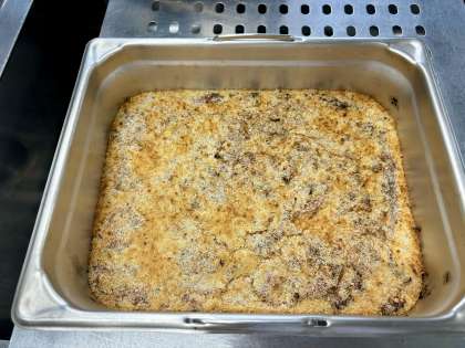 とうふのミートグラタンは、たんぱく質や脂質が豊富な大豆やとうふがたくさん入ったボリューム満点のグラタンで、ミートソース味で食べやすい工夫がされていました。