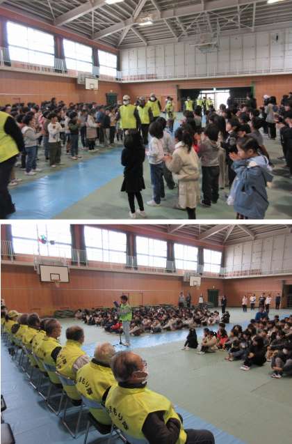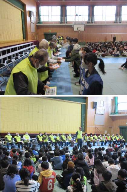 日頃から子どもたちの安全のために、校区のいたるところで見守っていただいてる皆さんに、講堂へお越しいただきました。