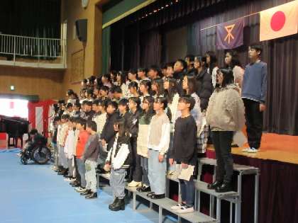卒業式を10日後にひかえて、今日は初めて卒業生(6年生)と5年生が合同で卒業式の練習をしました。