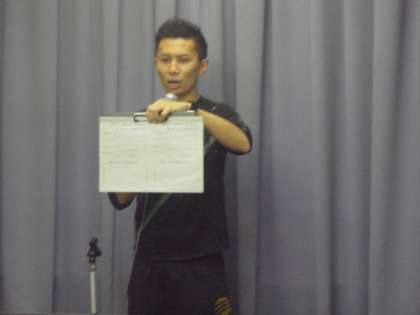 まず、校長先生のお話の後、生活指導部長の先生から、今日から始まった「安全に歩こう週間」の話をしました。手に持っているのは、「廊下・階段を安全に歩こうカード」です。