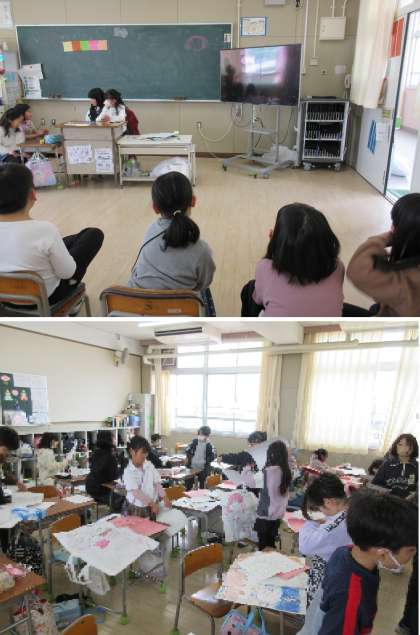(写真下)3年生は、お楽しみ会や図工の作品の整理をしていました。