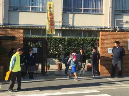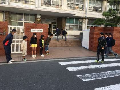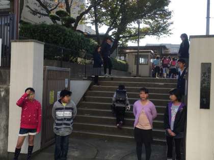 きれいな秋晴れで朝のあいさつは気持ちがいいです。